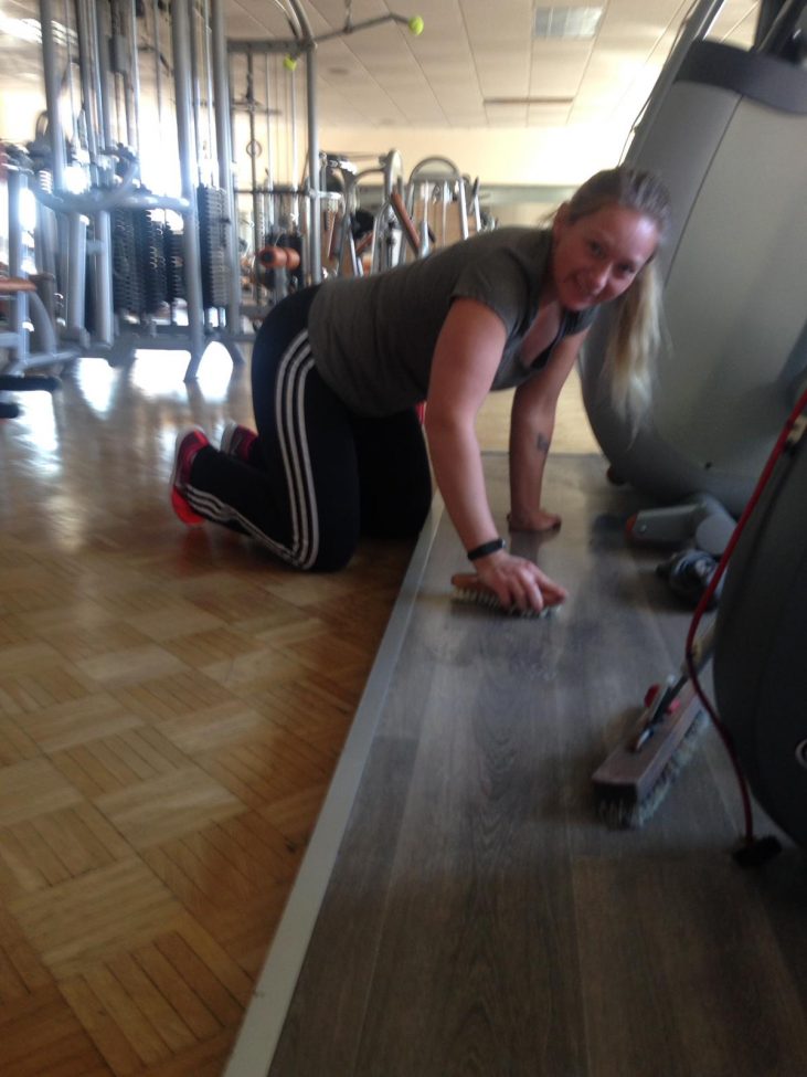 Von den Fenstern bis zu den Fußböden, von den Duschen bis zu den Schränken, von den kleinen Hanteln bis zu den großen Hantelbänken, von der Matte bis zu Ergometer und vom Büro bis zur Turnhalle haben wir uns durchgearbeitet. Auch in luftiger Höhe wurde die Deckenbeleuchtung der Sporthalle auf energiesparende LED Beleuchtung umgestellt, neue Farbe im Gymnastikstudio II aufgetragen und trübe Spiegel im Gymnastikstudio I ausgetauscht.