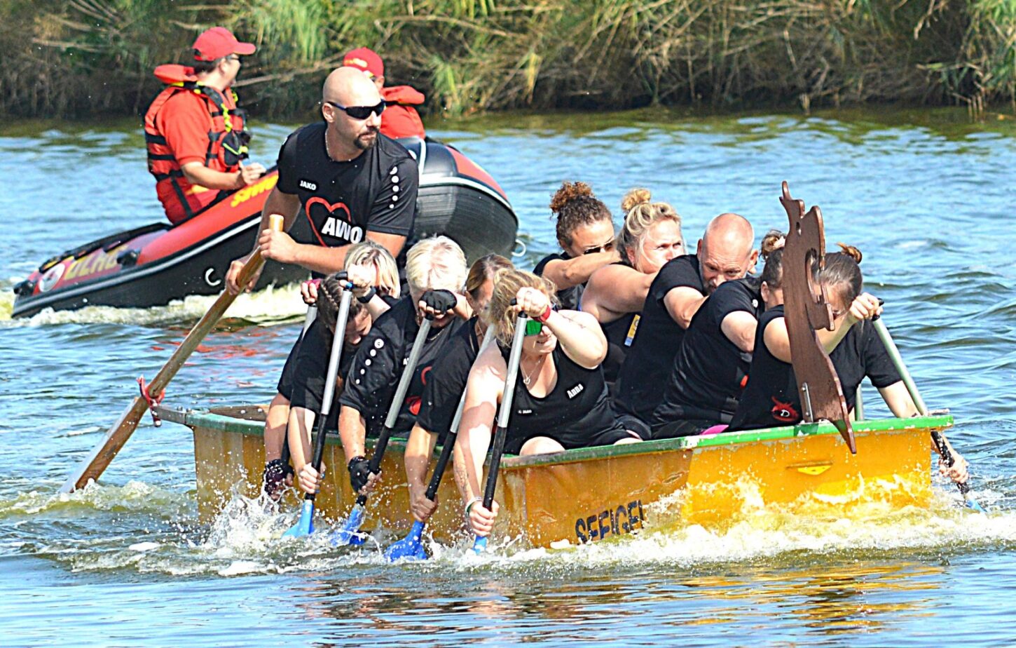 Die Teams bestehen aus 8 Paddler*innen. Hiervon müssen mindestens 6 betroffene Personen im Boot sitzen, max. 2 Supporter sind erlaubt. - Material und Bekleidung